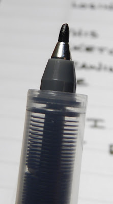 The overall weight of the pen is fairly light. The barrel is thicker than many pens and is comfortable to hold. In my ink review, I classified this as a sign pen. It is somewhat like a regular Sharpie Marker, but it doesn't seem up to the heavy-duty work of a permanent marker.